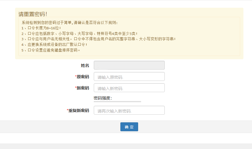 (3)当第一次登陆后,系统会要求你更改密码,如下图: